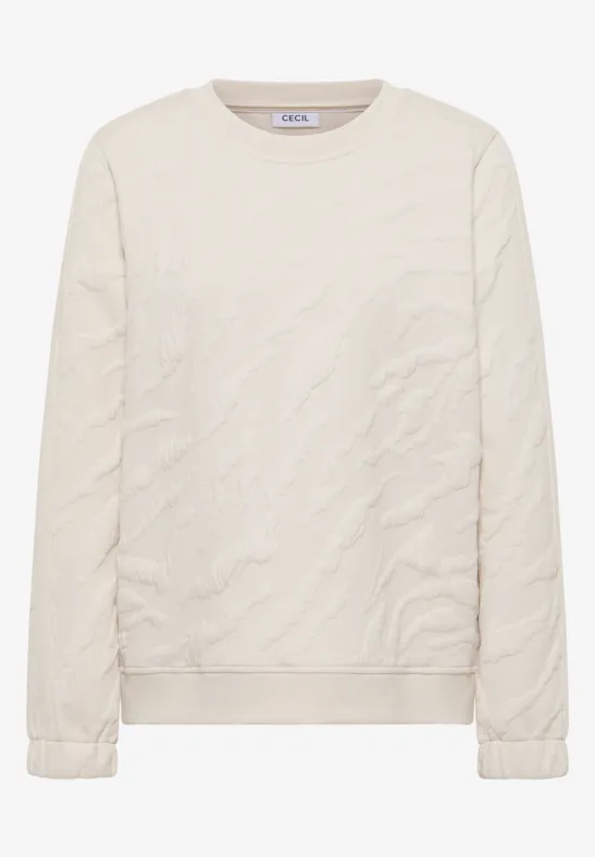 Het CECIL sweatshirt voor dames heeft een modern structuurpatroon en sportieve galonstrepen op de mouwen. De ronde hals en comfortabele pasvorm maken het de perfecte metgezel voor elke dag. Casual, comfortabel en stijlvol tegelijk.