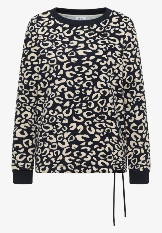 Het CECIL sweatshirt voor dames heeft een trendy luipaardpatroon en voelt behaaglijk aan dankzij de zachte sweatstof. De ronde hals en het trekkoord aan de zoom benadrukken de casual stijl. Ideaal voor ontspannen maar stijlvolle outfits.