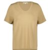 T-shirt Daily Kelp sand: Jouw Perfecte Basic Stel je de veelzijdigheid en het comfort voor van het T-shirt Daily Kelp sand, een onmisbare toevoeging aan je garderobe. Met zijn prachtige beige/bruine kleur en rechte pasvorm is dit T-shirt ontworpen om je die tijdloze en moeiteloze stijl te geven, seizoen na seizoen. Het T-shirt heeft korte mouwen en een elegante V-hals die een vleugje subtiliteit toevoegt aan je dagelijkse look. Gemaakt van hoogwaardige stof Dit T-shirt is gemaakt van een zachte mix van 95% viscose en 5% elasthan, wat zorgt voor een perfecte balans tussen comfort en elasticiteit. De natuurlijke viscose zorgt voor een ademend vermogen dat je fris houdt, terwijl de elasthan zorgt voor juist genoeg rek om altijd comfortabel te blijven. Het voelt licht aan op je huid, ideaal voor elke gelegenheid. Stijladvies Combineer het T-shirt Daily Kelp sand met een mooie jeans voor een moeiteloze, casual look. Of draag het met een blazer voor een iets gekledere uitstraling. De neutrale kleur van het T-shirt maakt het een veelzijdige basis, perfect om op eindeloos veel manieren te stijlen. Wasvoorschrift Was instructie Om de kwaliteit van de stof en de helderheid van de kleur te behouden, was je het T-shirt op 30 graden. Gebruik een mild wasmiddel om de zachtheid van het materiaal te behouden. Droogvoorschrift Laat je T-shirt aan de lucht drogen; vermijd het gebruik van een droger, aangezien dit de stof kan beschadigen. Strijkvoorschrift Strijk het T-shirt op lage temperatuur om kreuken glad te strijken zonder de delicate stof te beschadigen. Vermijd bleken en chemisch reinigen om de levensduur van je T-shirt te verlengen. Dit T-shirt is jouw trouwe metgezel voor elke gelegenheid, met een stijl die nooit uit de mode raakt.