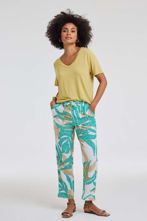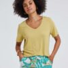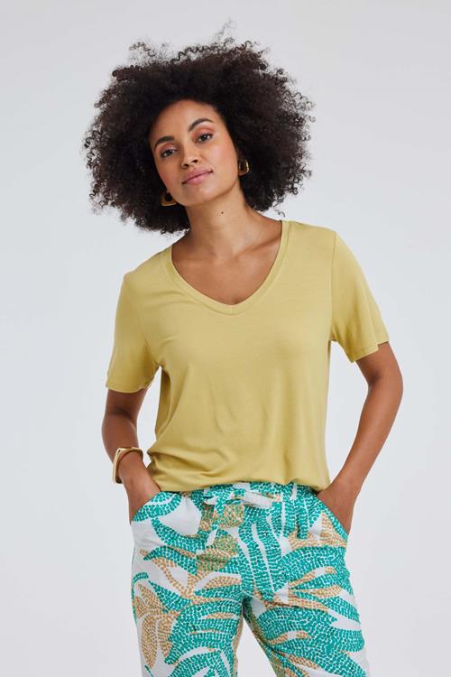 T-shirt Daily green: Tijdloze Stijl met Comfort Het T-shirt Daily green is dé keuze voor elke gelegenheid. Met zijn frisse groene kleur straal je vitaliteit uit. Gemaakt van een lichte en luchtige stof, perfect voor zonnige dagen, maar het hele jaar door te dragen. Dit model heeft een korte mouw en een rechte pasvorm, gecombineerd met een charmante V-hals, wat een elegant en subtiel detail toevoegt aan je look. Gemaakt van hoogwaardige stof Met 95% viscose en 5% elasthan biedt het T-shirt Daily green ultiem comfort en bewegingsvrijheid. Viscose zorgt voor een zachte en soepele touch, terwijl elasthan de stretch en vormbehoud garandeert. Ideaal voor dagelijks gebruik, van ontspannen werkdagen tot actieve vrijetijdsbesteding. Stijladvies Dit veelzijdige T-shirt is gemakkelijk te combineren. Draag het met een mooie jeans voor een casual en trendy uitstraling. Voeg je favoriete accessoires toe en je bent klaar om de deur uit te gaan! Wasvoorschrift Wasvoorschrift: Voor langdurig draagplezier was je het T-shirt op 30 graden. Volg deze instructies om de stof en kleur fris te houden. Droogvoorschrift: Vermijd de droger om vormverlies te voorkomen. Laat het T-shirt aan de lucht drogen. Strijkvoorschrift: Strijk op lage temperatuur om de stof soepel en mooi te houden. Volg deze zorginstructies om het beste uit je T-shirt Daily green te halen en keer op keer te genieten van zijn tijdloze allure.