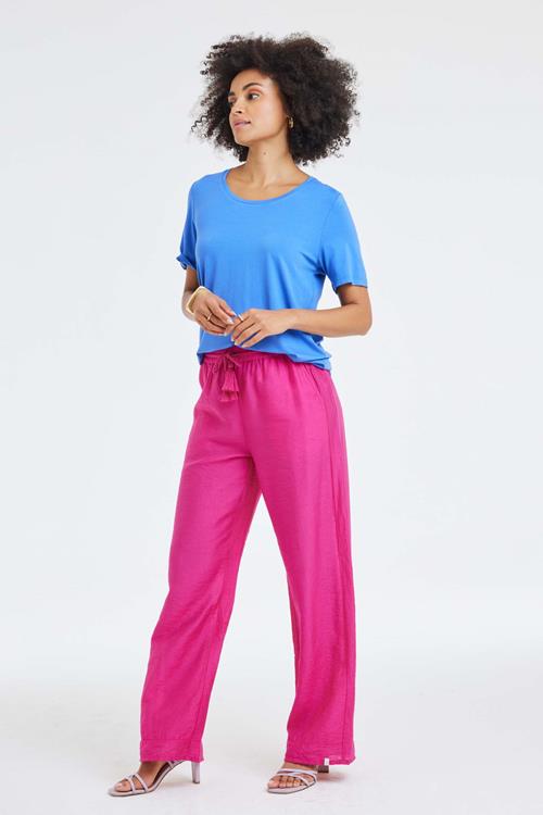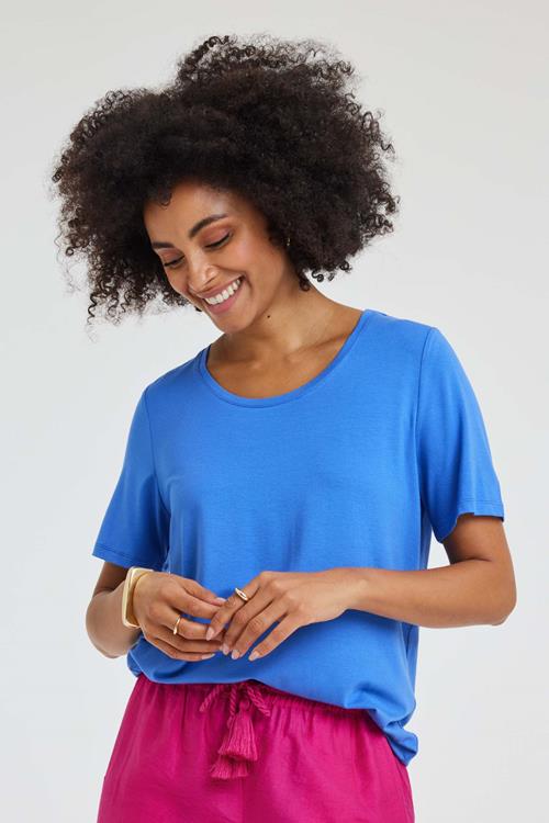 T-shirt Fame Ampora Blue: Tijdloos en Fris Het T-shirt Fame Ampora blue is een kledingstuk dat je garderobe voorziet van een frisse en levendige touch. Met zijn blauwe kleur straalt het een gevoel van frisse luchtigheid uit, ideaal voor die momenten waarop je je opgewekt en comfortabel wilt voelen. Het T-shirt heeft een ronde hals en korte mouwen, wat het perfect maakt voor elke gelegenheid. De regular fit en rechte pasvorm zorgen voor een flatterende look die gemakkelijk te combineren is met andere items. Gemaakt van hoogwaardige stof Dit T-shirt is vervaardigd uit een unieke mix van 95% viscose en 5% elasthan, waardoor het zowel zacht als flexibel is. De viscose zorgt voor een luxueuze aanraking en ademend vermogen, terwijl het elasthan zorgt voor dat beetje extra elasticiteit dat je comfort biedt in elke beweging. Ideaal voor dagelijks gebruik, met een uitstraling die nooit uit de mode raakt. Stijladvies Het T-shirt Fame Ampora blue laat je moeiteloos stralen in elke situatie. Draag het met een mooie jeans voor een casual en toch stijlvolle look die je overal kunt dragen. Laat je creativiteit spreken door te spelen met accessoires en kleuren, en creëer jouw unieke stijl. Wasvoorschrift Het wasvoorschrift: Wassen op 30 graden om de kwaliteit van het materiaal te behouden. Droogvoorschrift: Dit T-shirt mag niet in de droger, hang het liever te drogen om krimp te voorkomen. Strijkvoorschrift: Strijk het T-shirt op een lage temperatuur om de structuur en kleur levendig te houden. Met het T-shirt Fame Ampora blue kies je voor een tijdloos en comfortabel kledingstuk dat je keer op keer met plezier zult dragen.