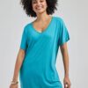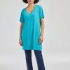 T-shirt Isa in Dark turquoise: Jouw Stijlvolle Keuze Met de T-shirt Isa in Dark turquoise kies je voor tijdloze elegantie. Dit korte mouw T-shirt, in een prachtige blauwe tint, is perfect om je op elk moment fris en stijlvol te voelen. Het rechtvallende, loose-fit model met een flatterende V-hals geeft je een comfortabele maar toch stijlvolle uitstraling. Perfect voor elke gelegenheid en moeiteloos te combineren binnen je garderobe. Gemaakt van hoogwaardige stof De T-shirt Isa is vervaardigd van 95% Vorteks viscose en 5% Elasthan. Deze combinatie zorgt voor een aangename, soepele stof die comfortabel aanvoelt op de huid. Vorteks viscose staat bekend om zijn ademende eigenschappen, ideaal voor warmere dagen, terwijl het Elasthan net dat beetje extra stretch biedt. Hierdoor behoud je de hele dag door een aangename bewegingsvrijheid. Stijladvies Deze veelzijdige T-shirt Isa in Dark turquoise kan je met allerlei stijlen combineren. Draag het casual met een paar sneakers, of geef je outfit meer flair met elegante accessoires. Het T-shirt staat ook prachtig op een mooie jeans. Zo creëer je eenvoudig een tijdloze look die altijd werkt. Wasvoorschrift Wasvoorschrift: Was het T-shirt binnenstebuiten op een zacht programma op maximaal 30 graden om de kwaliteit van de stof te behouden. Droogvoorschrift: Laat het liggend drogen, vermijd direct zonlicht om verkleuring tegen te gaan. Strijkvoorschrift: Strijken kan op een lage temperatuur voor een glad en netjes resultaat. Met deze tips houd je de T-shirt Isa in Dark turquoise in topconditie, waardoor je er nog lange tijd van kunt genieten.