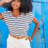 T-shirt Yuna Offwhite blue Stripe