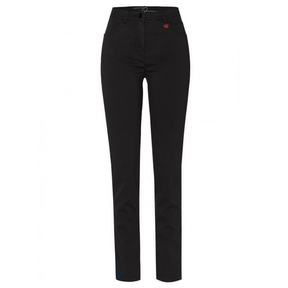 Broek van het merk Toni. Deze zwarte jeans heeft een comfortabele pasvorm met een hoge taille en rechte pijpen. De stretchkwaliteit zorgt voor optimaal draagcomfort en een mooie aansluiting. Op de achterzakken zit een subtiel strassdetail dat de broek een vrouwelijke touch geeft.