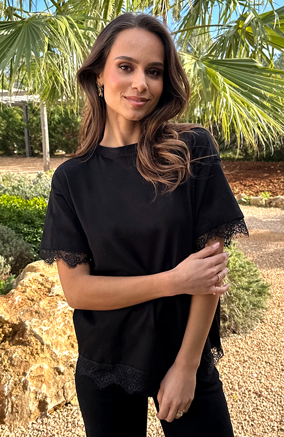 Top Met Kanten Details Zwart