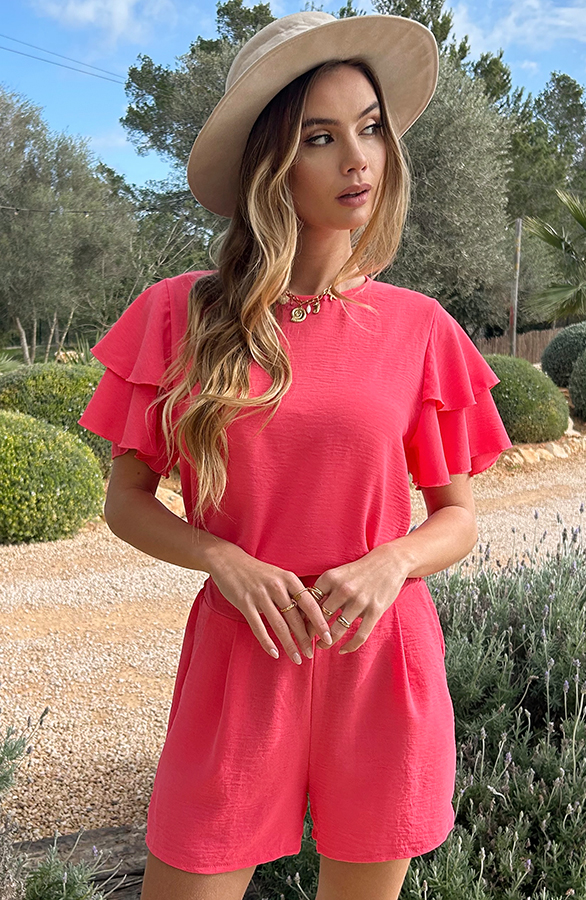 Deze top is een parel voor in je garderobe! De top is voorzien van ruffle mouwen, een ronde hals en een knoopje in de nek. De top is super leuk te combineren met je fave items! Sizes: S/M and L/XL – Size s/m is suitable for ladies with size S(36) and M(38) – Size l/xl is suitable for ladies with size L(40) and XL(42) Fit: valt als normaalModel: 180 cm and wears size S/MDetails: ronde hals, knoopje in nek and ruffle detail Material: 100% Polyester