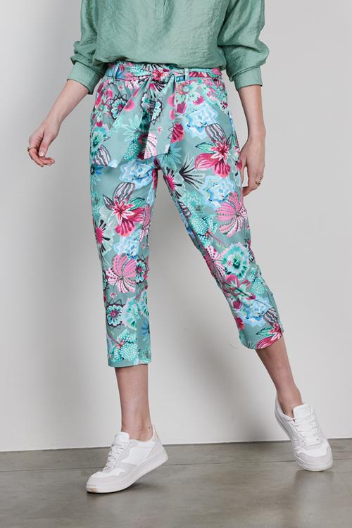 Travel capri Journal in de granite green with Floral Medley print Stel je voor dat je op een lichte, zonnige dag door de stad loopt of een ontspannen middag aan het strand doorbrengt. Met de Travel capri Journal in de granite green with Floral Medley print voel je je altijd op je gemak. Dankzij de regular waist en de elastische tailleband heb je optimale bewegingsvrijheid en comfort. De groene kleur met een levendige bloemenprint maakt deze capri de ideale keuze voor een frisse, vrolijke uitstraling. Gemaakt van hoogwaardige stof Deze capri is vervaardigd van een hoogwaardig materiaal dat bestaat uit 86% polyester en 14% elasthan. Het polyester zorgt voor duurzaamheid en lichte weerbaarheid, terwijl het elasthan een perfecte stretch biedt die elke natuurlijke beweging ondersteunt. Deze combinatie maakt de broek kreukvrij en gemakkelijk te onderhouden, ideaal voor dagelijks gebruik en de perfecte metgezel voor zonnige dagen. Stijladvies Combineer de Travel capri Journal met een prachtige bloemenprint moeiteloos met een leuke blouse voor een stijlvolle look. Voeg een paar stijlvolle sneakers of sandalen toe om het geheel compleet te maken. Dankzij het veelzijdige design kan deze capri zowel casual als chic gedragen worden. Wasvoorschrift Wasvoorschrift: Was de capri binnenstebuiten op maximaal 30 graden om de kleur en print te behouden. Droogvoorschrift: Hang de broek uit om te drogen, vermijd de droger om de stof en vorm te beschermen. Strijkvoorschrift: Strijken op lage temperatuur is voldoende om de stof glad te houden en de frisse look te bewaren. Met de Travel capri Journal in de granite green with Floral Medley print voeg je een veelzijdig en comfortabel kledingstuk toe aan je garderobe, perfect voor de zonnige dagen van het jaar. Ontdek Travel stof Dit product is gemaakt van travelstof. Deze stof heeft de volgende voordelen: ✔️ Voelt zacht en comfortabel ✔️ Kreukvrij ✔️ Stretch ✔️ Droogt snel