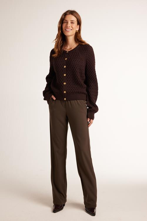 Veelzijdig Comfort – Travel pants Scanner Chocolate brown De Travel pants Scanner Chocolate brown zijn jouw ideale keuze voor elke gelegenheid, van een ontspannen middagwandeling tot een stijlvolle avond uit. Deze lange broek in een elegante beige/bruine tint heeft een straight fit, wat zorgt voor een tijdloze look die altijd in de mode is. De elastische tailleband met koord biedt zowel stijl als comfort, zo blijf je er de hele dag comfortabel en verzorgd uitzien. Gemaakt van hoogwaardige stof Met 86% polyamide en 14% elasthan geniet je van de perfecte balans tussen flexibiliteit en duurzaamheid. Deze samenstelling maakt de broek ademend en licht, perfect voor de warme dagen, terwijl je toch genoeg warmte behoudt op koelere momenten. Het materiaal voelt zacht aan op de huid en beweegt met je mee, zonder zijn vorm te verliezen. Stijladvies Combineer de Travel pants Scanner Chocolate brown met een leuke blouse voor een veelzijdige en verfijnde look. Deze combinatie maakt je outfit geschikt voor zowel kantoor als een casual buitenactiviteit. De neutrale kleur maakt het makkelijk om met verschillende tops te combineren. Wasvoorschrift Wassen: Was de broek op 30 graden om de kwaliteit en kleur te behouden. Droogvoorschrift: Vermijd de droger; laat de broek liever aan de lucht drogen. Strijkvoorschrift: Strijken kan op een lage temperatuur om ongewenste kreuken glad te strijken. Met de Travel pants Scanner Chocolate brown haal je een kledingstuk in huis dat moeiteloos past bij elke stijl en gelegenheid, met het comfort dat je verdient. Ontdek Travel stof Dit product is gemaakt van travelstof. Deze stof heeft de volgende voordelen: ✔️ Voelt zacht en comfortabel ✔️ Kreukvrij ✔️ Stretch ✔️ Droogt snel