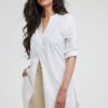 Voel je comfortabel in de Tunic Chill In Offwhite Bouquet embro De Tunic Chill In Offwhite Bouquet embro is een perfecte toevoeging voor je lentegarderobe. Deze tuniek, uitgevoerd in een prachtige, witte tint, biedt een combinatie van stijl en comfort. Met zijn rechte pasvorm en lange mouwen is het een veelzijdig stuk dat elke outfit moeiteloos aanvult. De delicate print geeft het een subtiele, elegante uitstraling, wat je look fris houdt. Dankzij de praktische knoopsluiting en de V-hals is deze tuniek zowel stijlvol als gebruiksvriendelijk. Gemaakt van hoogwaardige stof Deze tuniek is gemaakt van 100% katoen, een materiaal dat bekendstaat om zijn ademende en lichte eigenschappen, ideaal voor de warmere dagen. Katoen zorgt voor een comfortabel gevoel op de huid en is daarnaast duurzaam en makkelijk te onderhouden. Je kunt vertrouwen op de lange levensduur en het behoud van kwaliteit bij juist onderhoud. Stijladvies Je kunt de tuniek gemakkelijk combineren met een strakke dames rok of een casual dames jurk. Draai de mouwen op voor een meer nonchalante look, of kies voor elegante accessoires om de tuniek geschikt te maken voor speciale gelegenheden. Met dit veelzijdige kledingstuk kun je zowel een relaxte als chique outfit samenstellen. Wasvoorschrift Wasvoorschrift: Was de tuniek op een lage temperatuur om de kwaliteit van het katoen te behouden. We raden een wasprogramma aan van maximaal 30 graden. Droogvoorschrift: Laat de tuniek aan de lucht drogen om krimp te voorkomen en de stof mooi te houden. Strijkvoorschrift: Strijk de tuniek op een lage tot middelhoge temperatuur om de print en stof in topconditie te houden. De Tunic Chill In Offwhite Bouquet embro is ontworpen met oog voor detail en functionaliteit, zodat je altijd stijlvol en zelfverzekerd voor de dag komt.