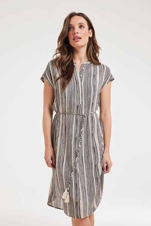 Fris en stijlvol met Tunic Isla Feather Wavy print Ervaar de perfecte combinatie van stijl en comfort met de Tunic Isla Feather Wavy print. Deze tuniek in zwart en grijs straalt elegantie en veelzijdigheid uit. De rechte pasvorm met een speels kapmouwtje en een subtiele knoopsluiting aan de ronde hals maken het een perfect kledingstuk voor een frisse en luchtige uitstraling. Het unieke golfpatroon voegt net dat beetje extra flair toe. Laat je inspireren door deze stijlvolle tuniek die gemakkelijk elke gelegenheid aankan. Gemaakt van hoogwaardige stof Gemaakt van 100% viscose, biedt deze tuniek een zachte en soepele draagervaring. Viscose staat bekend om zijn ademende eigenschappen, waardoor het ideaal is voor warmere dagen. Het materiaal valt moeiteloos om je lichaam en zorgt voor een lichte en comfortabele pasvorm. Viscose houdt kleuren helder en levendig, waardoor het zwart-grijze patroon prachtig tot zijn recht komt. Stijladvies Combineer de Tunic Isla Feather Wavy print met een klassieke damesrok voor een verfijnde look, of draag het als een losse damesjurk met sandalen voor een casual dagje uit. Voeg accessoires toe in neutrale tinten om de print te laten spreken. Deze tuniek past perfect bij zowel elegante als ontspannen gelegenheden, waardoor het een veelzijdig item in je garderobe is. Wasvoorschrift Wasvoorschrift: Was het artikel op een fijnwasprogramma met een lage temperatuur om het materiaal te beschermen. Droogvoorschrift: Laat de tuniek aan de lucht drogen op een vlak oppervlak om de vorm en de kwaliteit van de stof te behouden. Strijkvoorschrift: Strijk op lage temperatuur en bij voorkeur aan de binnenkant om de kleuren mooi te bewaren. Voeg deze stijlvolle tuniek toe aan je collectie en geniet van de veelzijdigheid en het comfort dat het biedt voor allerlei gelegenheden.