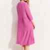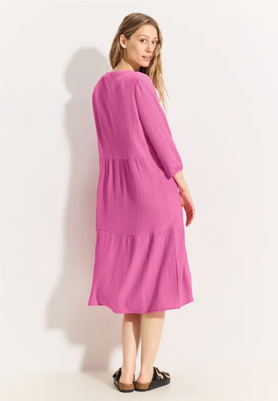 Deze tuniekjurk van CECIL voor dames is een charmante seersucker midi-jurk met een gestructureerd oppervlak voor een interessante uitstraling. Met een halslijn met split en 3/4 mouwen met manchetten, wordt een elegant silhouet gecreëerd. Met een licht getailleerde snit en decoratieve, geplooide naden benadrukt hij het figuur op een aantrekkelijke manier en krijgt de jurk een geraffineerde touch.