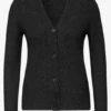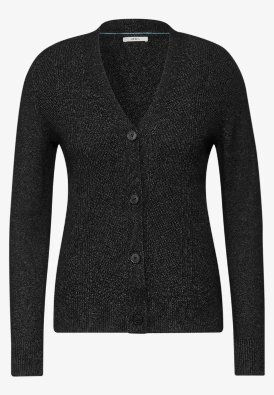 Het gestructureerde mix vest van CECIL voor dames combineert stijlvol verschillende breipatronen voor een moderne look. De V-hals en knoopsluiting geven het vest een klassiek silhouet. De lange mouwen met manchetten ronden het ontwerp af en bieden behaaglijk comfort.