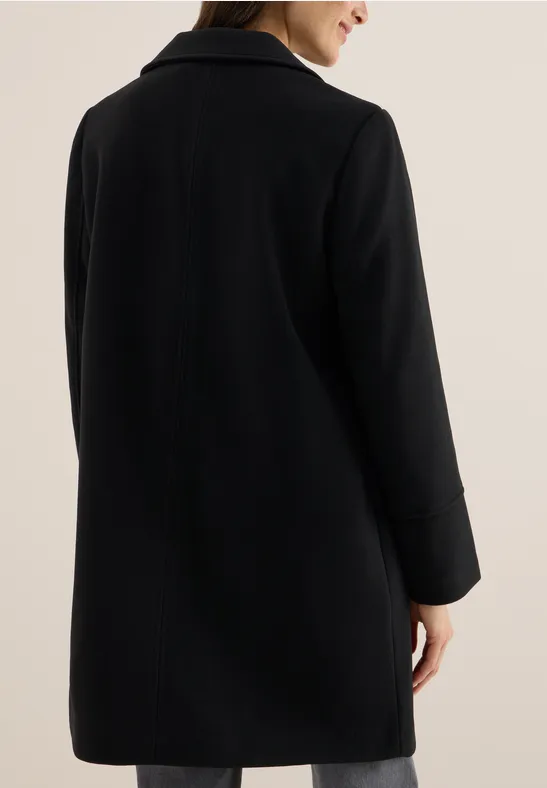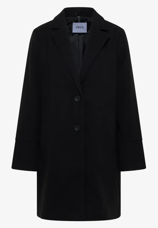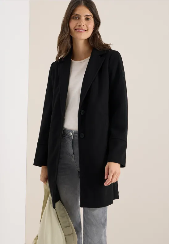 De CECIL-jas voor dames heeft een moderne wollen look en een stijlvolle reverskraag. Twee knopen, steekzakken en fijne sierstiksels benadrukken het klassieke ontwerp met ton-sur-ton details. De comfortabele pasvorm en hoogwaardige look maken het de ideale metgezel voor je herfst- en wintergarderobe.