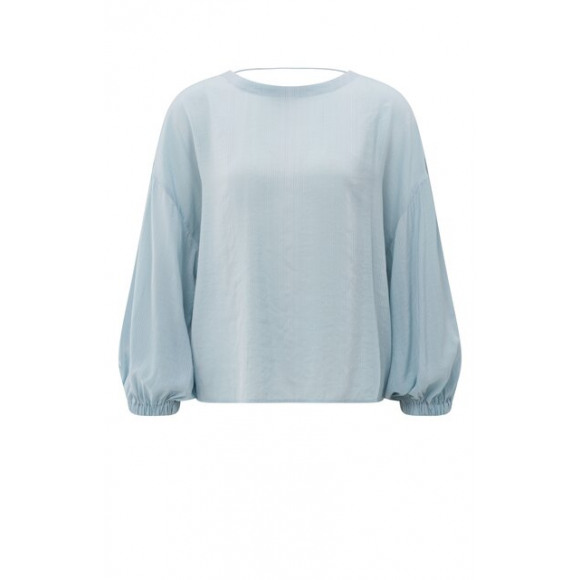 Blouse van het merk YAYA. Deze luchtige blouse in lichtblauw heeft een verrassend ontwerp met een ronde hals voor en een diepe V-hals met strikdetail achter. De volumineuze ballonmouwen en elastische boorden zorgen voor een speels silhouet.