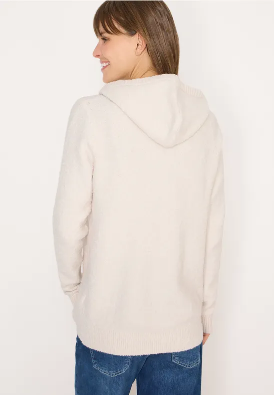Met zijn zachte bouclétextuur en capuchon met trekkoord brengt deze damestrui van CECIL zachte nonchalance in je dagelijks leven. De combinatie van breigoed en zachte bouclé zorgt voor een bijzondere look en een comfortabel gevoel. Ideaal voor ontspannen feelgoodmomenten.