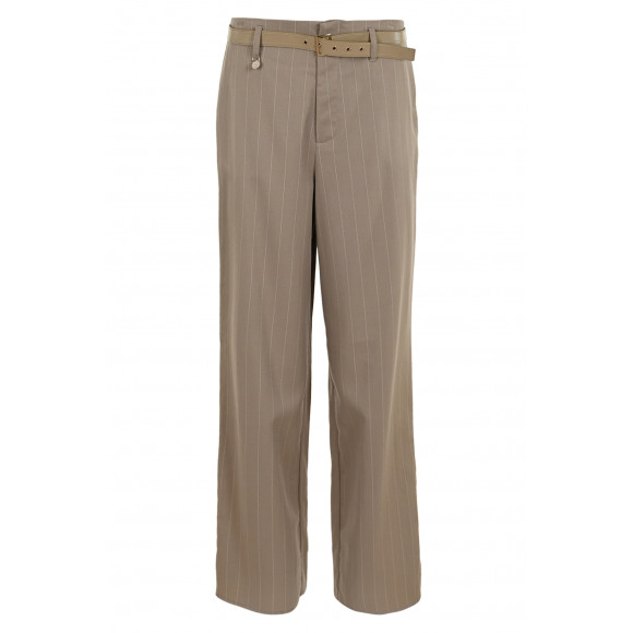 Pantalon van het merk Zizo. Deze beige broek met subtiele krijtstreep heeft een elegante uitstraling en is afgewerkt met een bijpassende riem. De rechte pijpen zorgen voor een moderne en tijdloze look, ideaal voor zowel casual als zakelijke outfits.