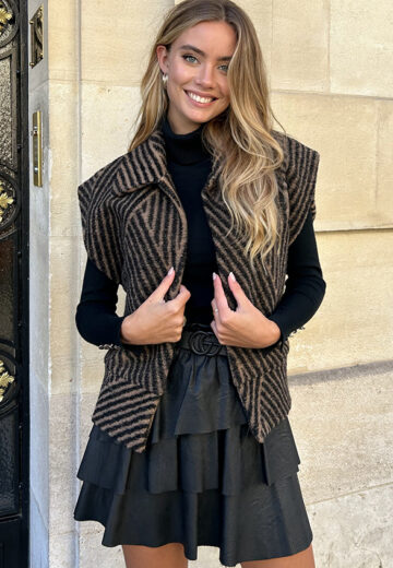 Striped Teddy Gilet Tara Zwart Camel