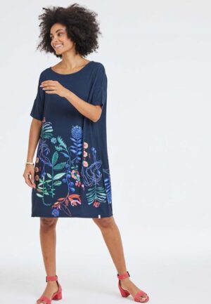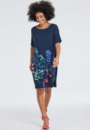 Loose dress Baya print Darkblue Botanic spice panel